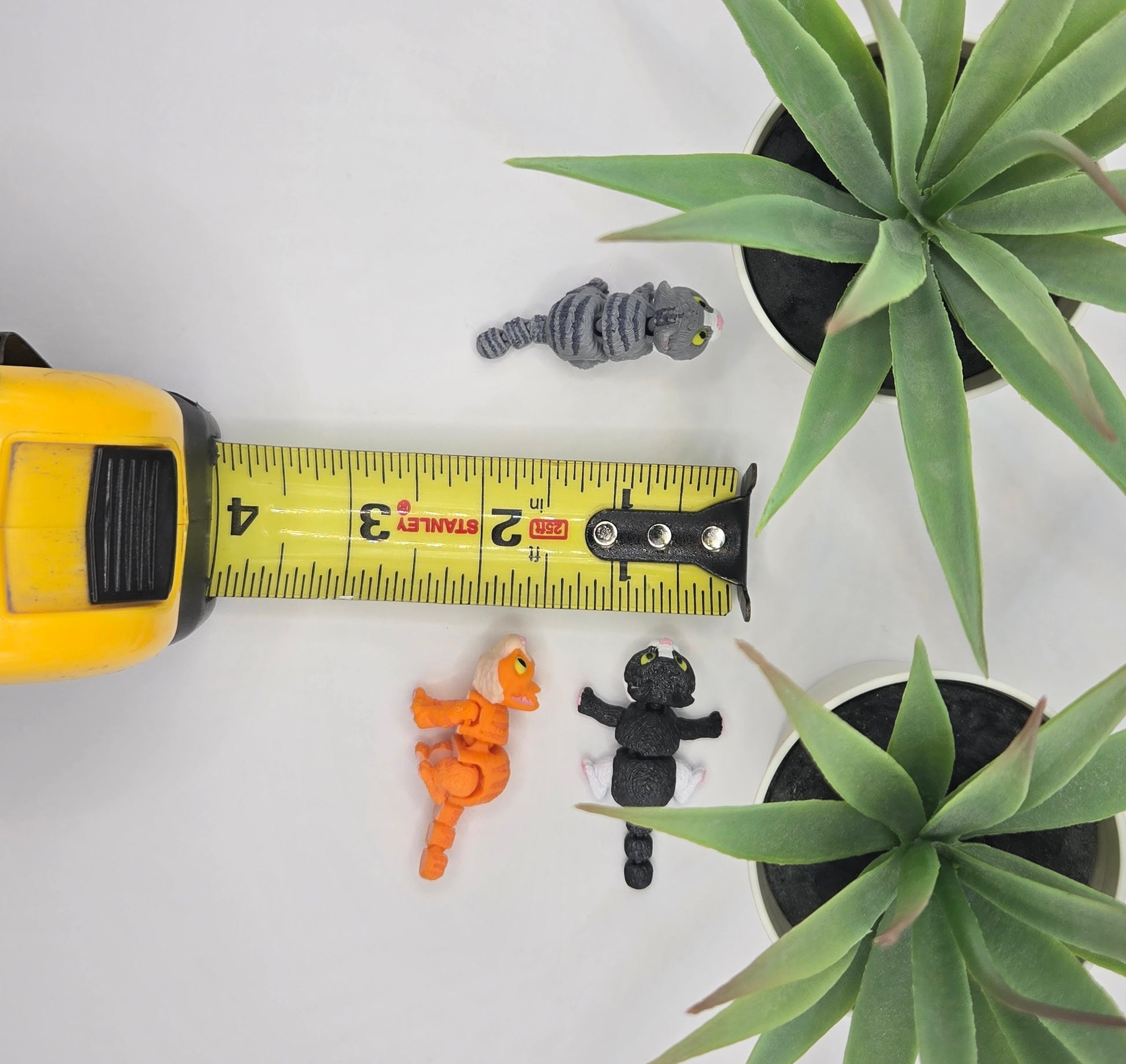 These mini fidget articulating toys are between 0.75 and 2 inches in length, depending on the model. Please review the listing photos for measurements and size comparisons.