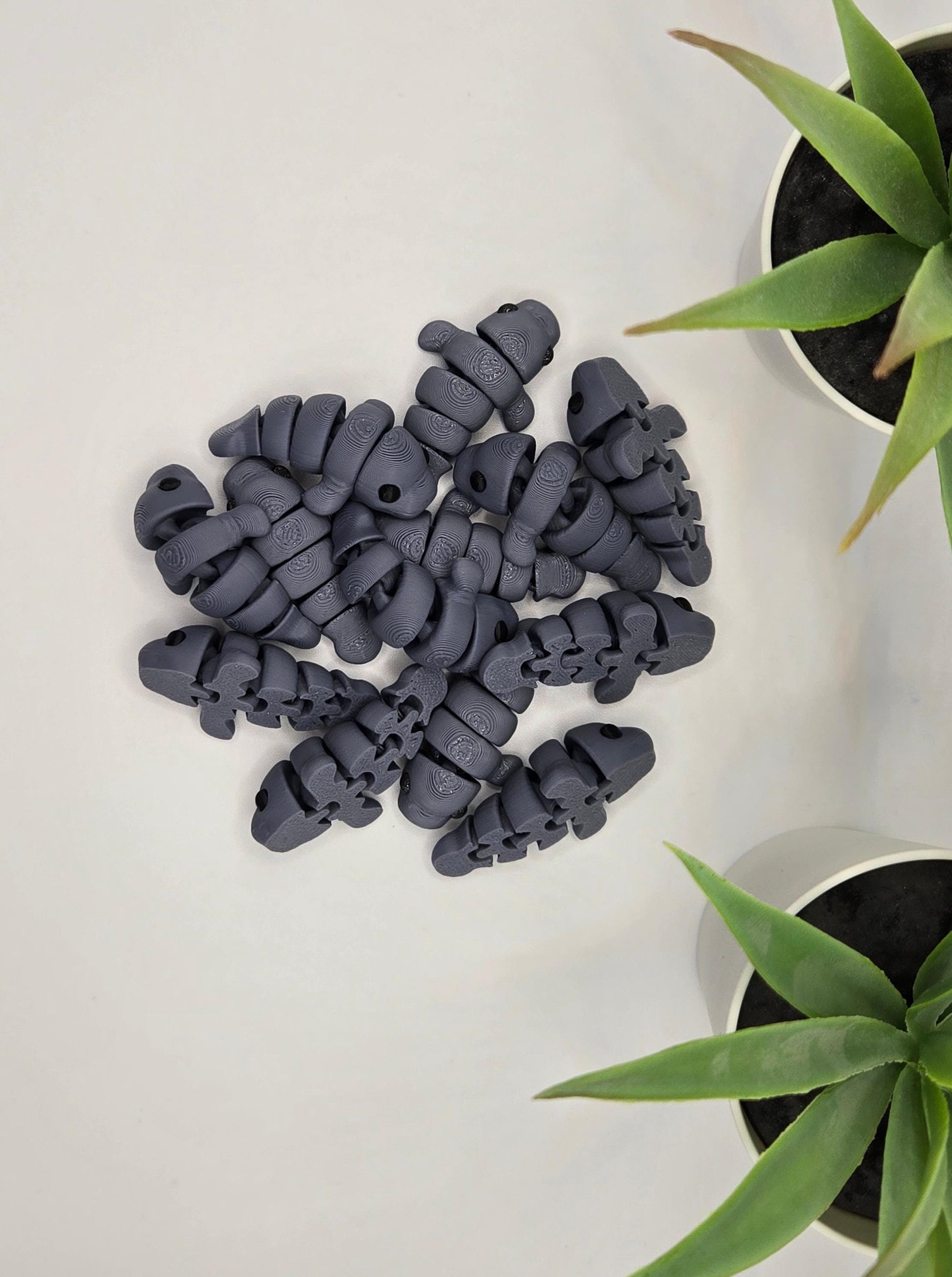 These mini fidget articulating toys are between 0.75 and 2 inches in length, depending on the model. Please review the listing photos for measurements and size comparisons.